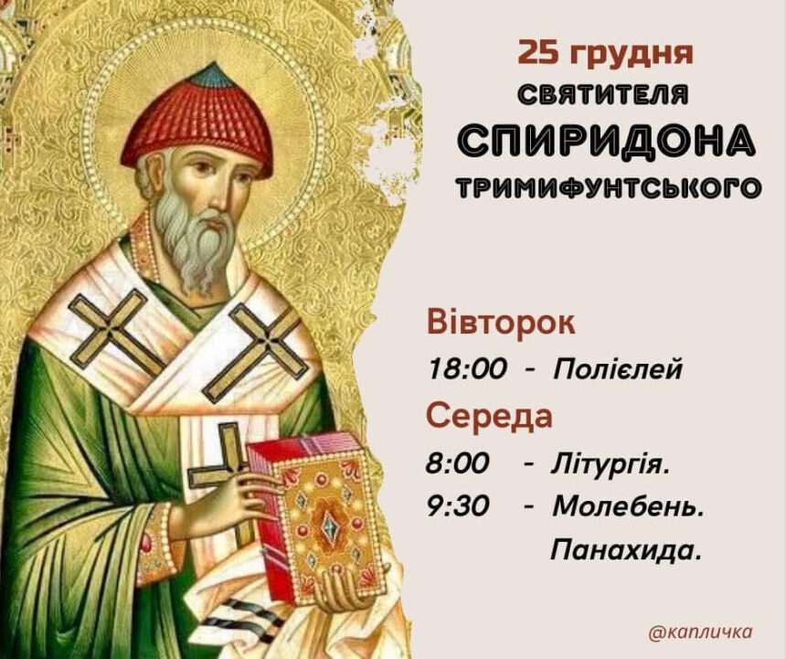 25 грудня • Святителя Спиридона Тримифунтського