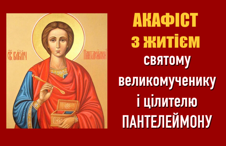 О великий Христов угодниче и преславный целебниче, великомучениче Пантелеимоне! Душею на Небеси Престолу Божию предстояй и Триипостасныя Его славы наслаждаяйся, телом же и ликом святым на земли в Божественных храмех почиваяй и данною ти свыше благодатию различная чудеса источаяй, призри милостивным твоим оком на предстоящия люди, честней твоей иконе умильно молящияся и просящия от тебе целебныя помощи и заступления. Простри ко Господу Богу нашему теплыя твоя молитвы и испроси душам нашим оставление согрешений. Се бо мы, за беззакония наша не смеюще возвести очеса наша к высоте Небесней, ниже вознести глас молебный к Его в Божестве неприступней славе, сердцем сокрушенным и духом смиренным тебе, ходатая милостива ко Владыце и молитвенника за ны, грешныя, призываем, яко ты приял еси благодать от Него недуги отгоняти и страсти исцеляти. Тебе убо просим: не презри нас, недостойных, молящихся тебе и твоея помощи требующих. Буди нам в печалех утешитель, в недузех лютых страждущим врач, напаствуемым скорый покровитель, очесем недугующим прозрения датель, ссущим и младенцем скорый предстатель и исцелитель. Исходатайствуй всем вся, яже ко спасению полезная, яко да твоими ко Господу Богу молитвами получивше благодать и милость, прославим всех благих Источника и Дароподателя Бога, Единаго в Троице Святей славимаго Отца и Сына и Святаго Духа, ныне и присно, и во веки веков. Аминь.