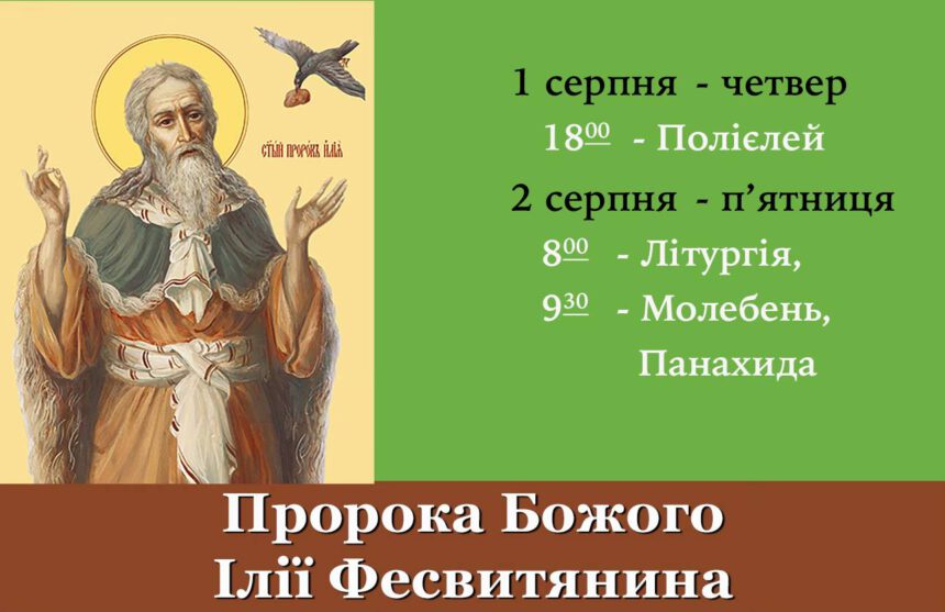 Новини Пророк Божий Ілія запрошує нас на спільну молитву. Опубліковано: 1 Серпня, 2024 Переглядів: 330 Час читання: 0 хвилин Поділіться 1 серпня – четвер 18:00 – Полієлей 2 серпня – пʼятниця 8:00 – Літургія, 9:30 – Молебень, Панахида Розклад богослужінь на червень. Від землі на Небо Возноситься Христос, аби приготувати нам місця в обителях Отця Благовісники Христового Різдва. Дякуємо найменшим вихованцям Хорової студії «Д Капличка в чеканні Христа Воскреслого. 6 та 7 лютого своїх Небесних покровителів вшановують матушка Ксенія та отець Віт Поділіться цією статтею Facebook Telegram Скопіюйте посилання Роздрукувати Попередня Розклад богослужінь на серпень Наступна стаття Пресвята Богородиця кличе нас обʼєднатися в молитві навколо Її ікони «Почаївська Благовіщення Публікації Коли нізвідки не можна чекати допомоги: життя преподобного Алексія Голосіївського Публікації Акафіст перед іконоюПресвятої Богородиці “Всецариця” Акафісти Оголошення Божественна літургія свт.Василія Великого. Текст богослужіння на 16.03.2025 Богослужіння Адреса: Волинська обл.м.Ковельвул. Ветеранів, 1-аУкраїна Телефони Церковна крамниця: +38 068 788 77 22 Охорона: +38 096 721 17 25 Email: kaplychka@ukr.net Середа, 18 Лютого, 2026 СЛІДКУЄМО ЗА БОГОСЛУЖІННЯМ АкафістиОголошення Акафіст перед іконоюПресвятої Богородиці “Всецариця” РОЗКЛАД БОГОСЛУЖІНЬ - Благодійний внесок -