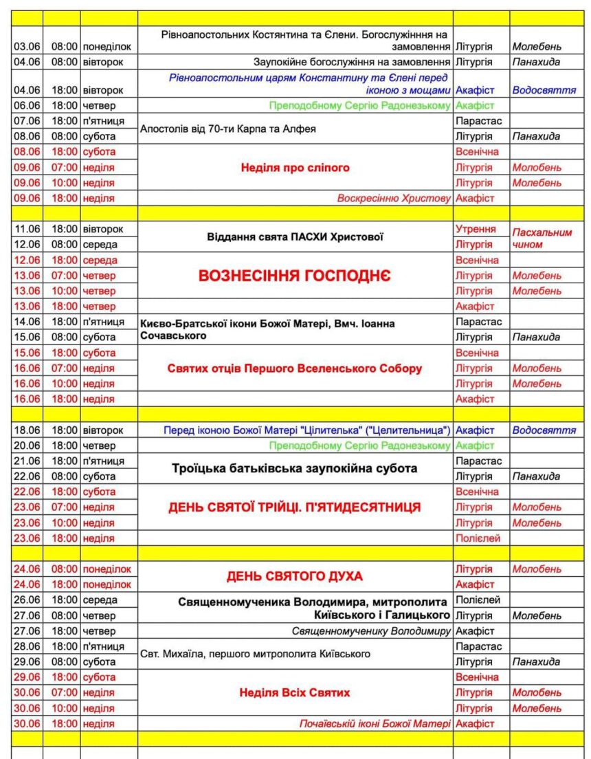 Новини Розклад богослужінь на червень. Опубліковано: 1 Червня, 2024 Переглядів: 45 Час читання: 0 хвилин Поділіться Парафіян та гостей Різдвяної Всенічної вітатимуть діти! Недільна школа є унікальною можливістю для дітей У Хрестопопоклонну неділю розкажи підлітку про Хрест Господній Світ Різдва очами дітей. Конкурс дитячих малюнків. 6 та 7 лютого своїх Небесних покровителів вшановують матушка Ксенія та отець Віт Поділіться цією статтею Facebook Telegram Скопіюйте посилання Роздрукувати Попередня «Сильні, бо разом!» – справа, що єднає. Наступна стаття «Хорос» – гурток з підготовки вівтарників завершив навчальний рік Благовіщення Публікації Коли нізвідки не можна чекати допомоги: життя преподобного Алексія Голосіївського Публікації Акафіст перед іконоюПресвятої Богородиці “Всецариця” Акафісти Оголошення Божественна літургія свт.Василія Великого. Текст богослужіння на 16.03.2025 Богослужіння Адреса: Волинська обл.м.Ковельвул. Ветеранів, 1-аУкраїна Телефони Церковна крамниця: +38 068 788 77 22 Охорона: +38 096 721 17 25 Email: kaplychka@ukr.net Середа, 18 Лютого, 2026 СЛІДКУЄМО ЗА БОГОСЛУЖІННЯМ АкафістиОголошення Акафіст перед іконоюПресвятої Богородиці “Всецариця” РОЗКЛАД БОГОСЛУЖІНЬ - Благодійний внесок -