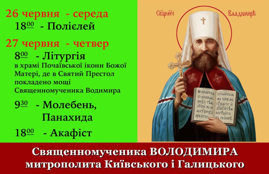 У нашому храмі Почаївської ікони Божої Матері в Престолі покояться мощі священномученика Володимира