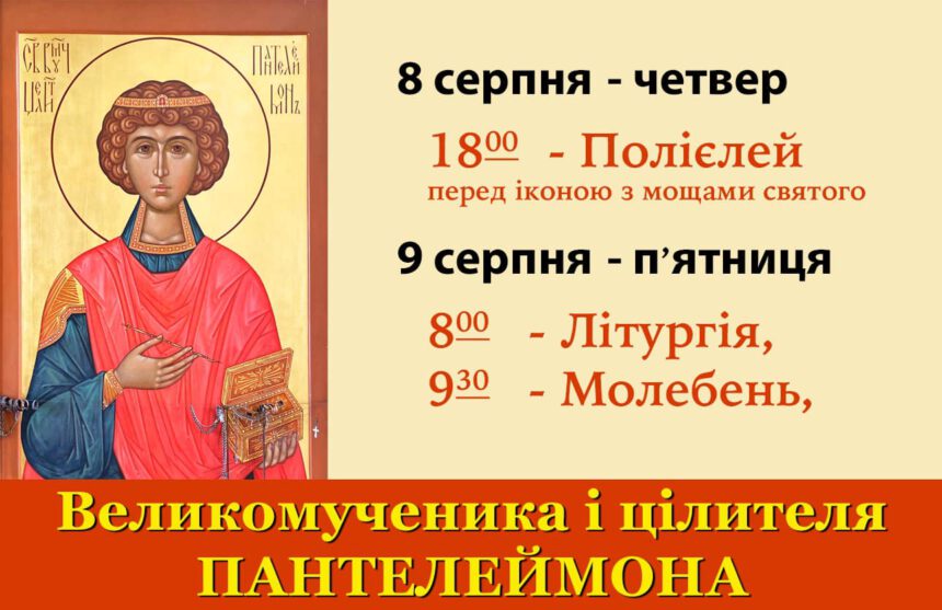 Запрошуємо спільно звершити молитву великомученику за віру Христову, носію євангельського світла та безкорисливому лікарю наших недугів.