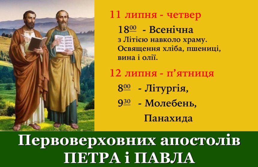 Запрошуємо вшанувати святих первоверховних апостолів у нашому храмі.