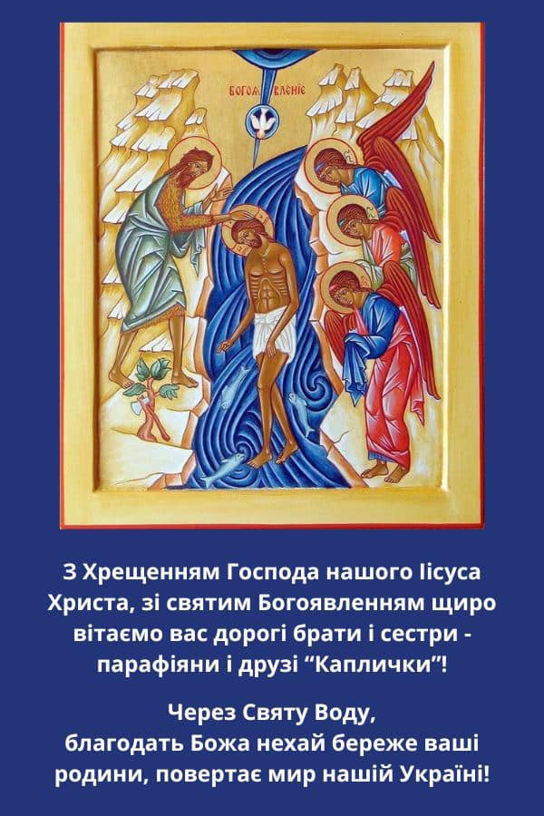 З Хрещенням Господа нашого Іісуса Христа, зі святим Богоявленням щиро вітаємо вас дорогі брати і сестри – парафіяни і друзі “Каплички”!